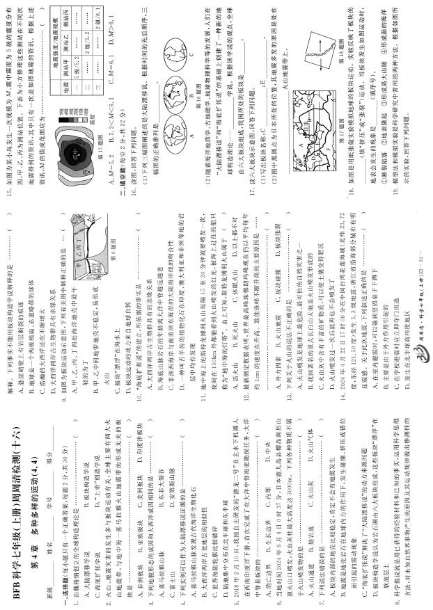 周周清检测七年级上第4章 多种多样的运动(4.4)(扫描附答案)