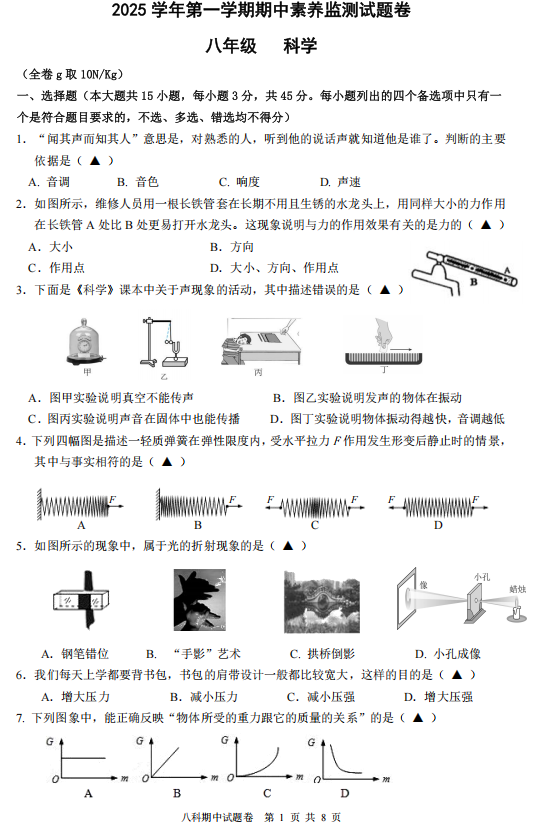 3.下面是《科学》课本中关于声现象的活动,其中描述错误的是( ▲ )