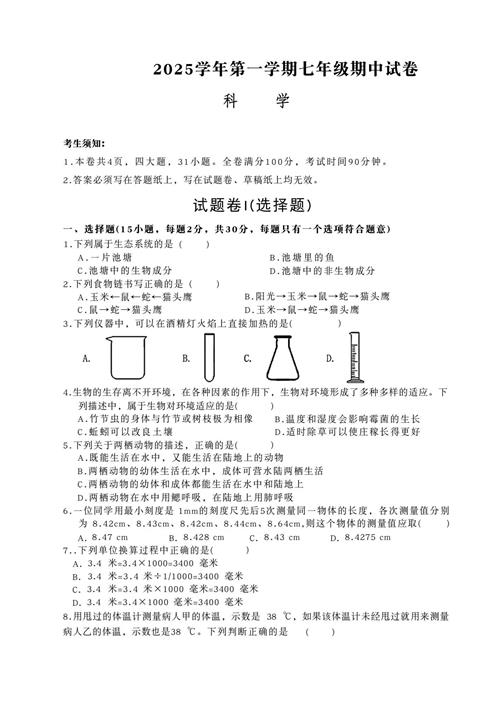 2025学年第一学期七年级期中试卷(扫描附答案)