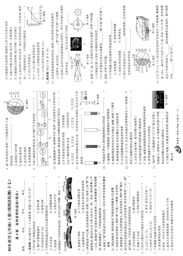 周周清检测七年级上第4章 多种多样的运动(综合)(扫描附答案)