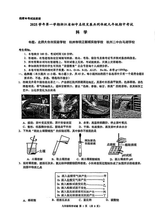 2025学年第一学期浙江省初中名校发展共同体九年级期中考试(扫描无答案)