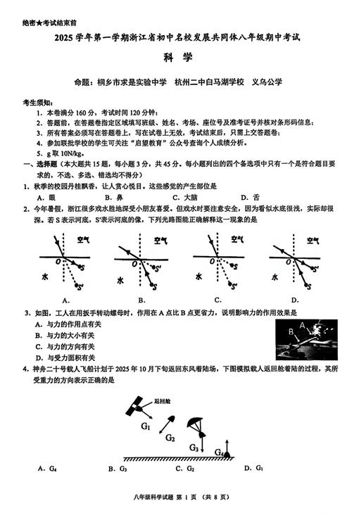 2025学年第一学期浙江省初中名校发展共同体八年级期中考试(扫描无答案)