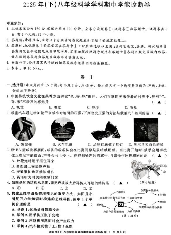 2025-2026学年浙共体八上科学期中试卷(扫描含答案)