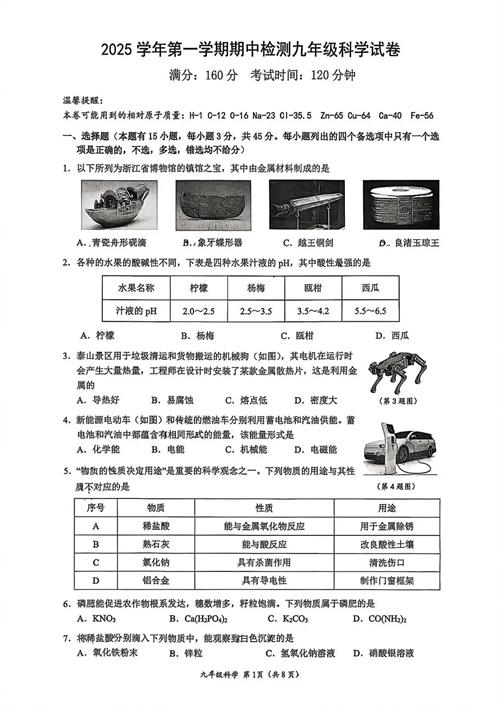 温州市绣山中学九上科学期中卷试题2025.11(扫描附答案)