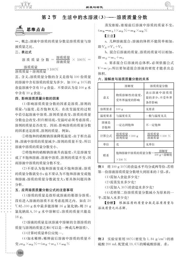 【拓展与培优】第2节 生活中的水溶液(3)--溶质质量分数(扫描pdf版,含答案)