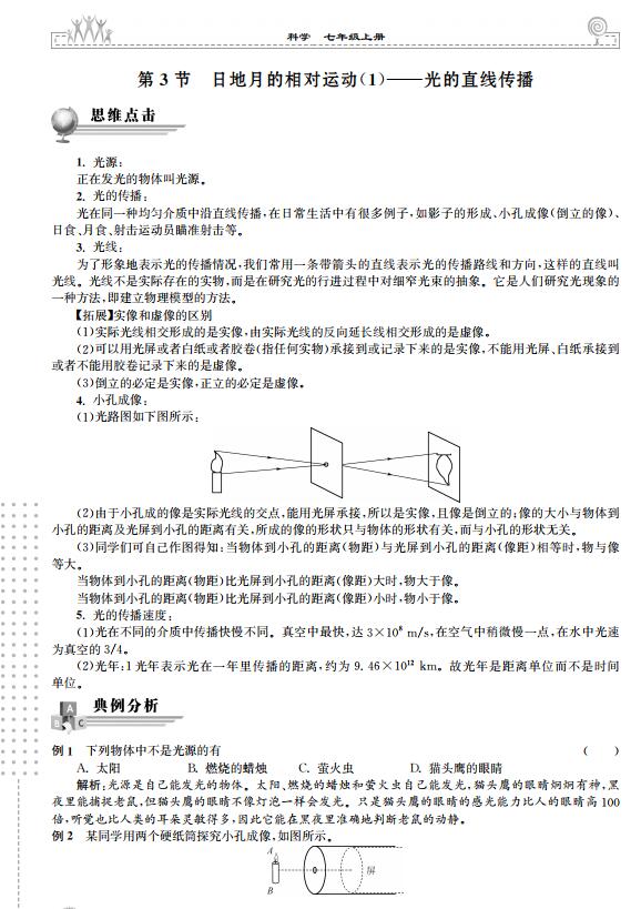 第3节 日地月的相对运动(1)———光的直线传播(扫描pdf版,含答案)
