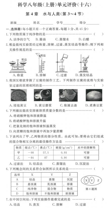 周周清试卷:第4章水与人类(3~4节)(扫描附答案)