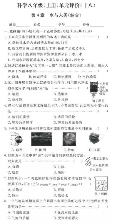 周周清试卷:第4章水与人类(综合)(扫描附答案)