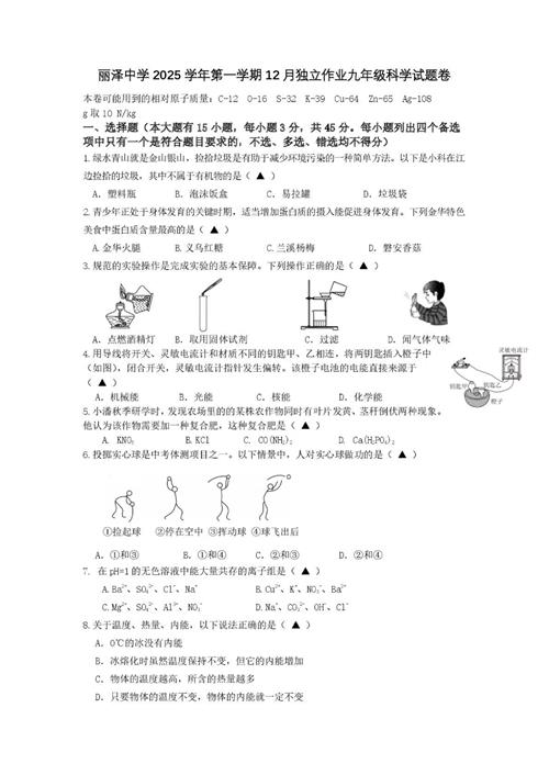 浙江省金华市丽泽教育集团2025-2026学年九年级上学期12月独立作业试题(扫描附答案)