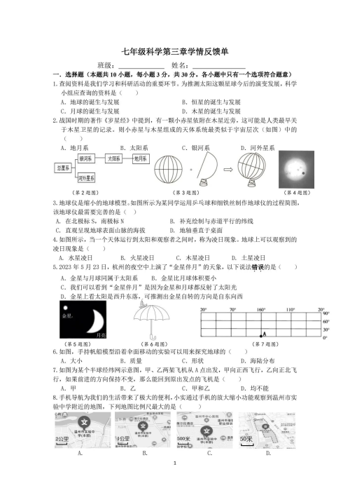 您现在的位置: 余杭科学——浙教版《科学》教学资源网 >> 下载中心 >> 七年级上册 >> 第三章 广袤浩瀚的宇宙 >> 第3章复习与测试 >> 练习与测试 >> 资源信息
