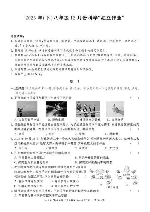 浙江省浙江共同体名校联盟2025-2026学年上学期12月月考八年级试题(扫描附答案)