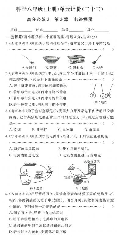 周周清:期末高分必备3 第3章 电路探秘(扫描附答案)