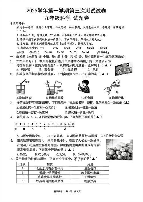 2025年12月湖州市长兴县龙山共同体九上科学月考卷试题(扫描附答案)