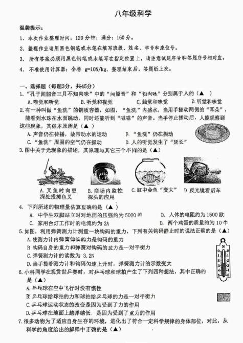 浙江省杭州市丁荷丁信中学2025-2026学年八年级上学期12月月考科学试卷(PDF版,无答案 1.1-4.3)