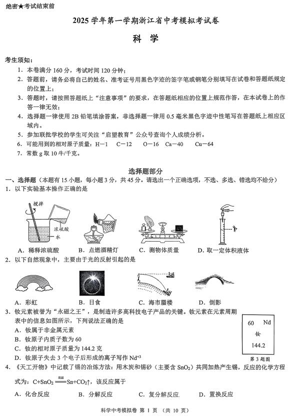 2026年浙江省“浙共体”中考一模科学试题(扫描附答案)
