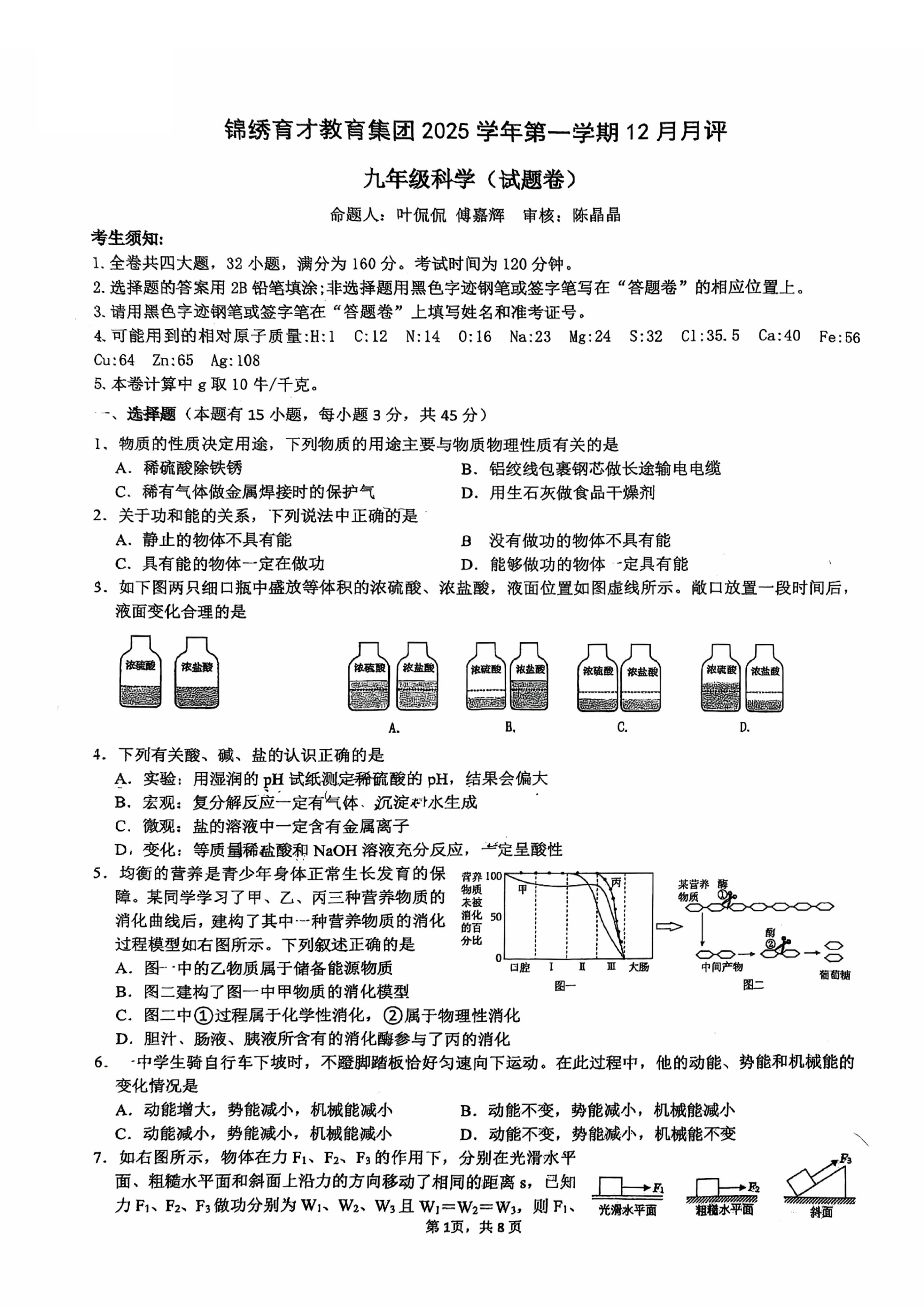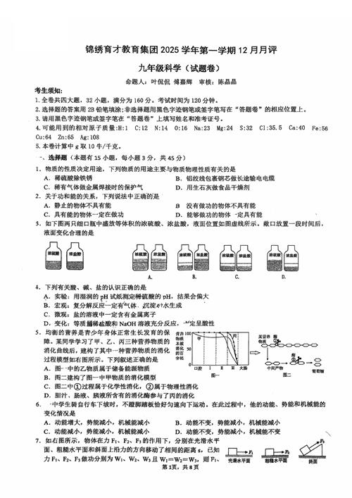 25年12月杭州锦绣育才九上检测 科学卷(扫描无答案)