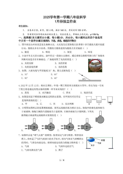 丽水缙云瑞杰实验学校八上1月独立作业(2026.1)(扫描附答案)
