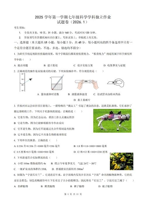 丽水缙云瑞杰实验学校七上1月独立作业(2026.1)(扫描附答案)