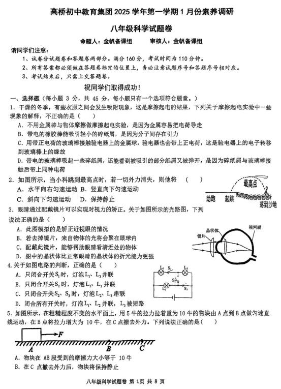 浙江省杭州市萧山区高桥教育集团2025学年第一学期1月份素养调研(扫描PDF版 无答案)