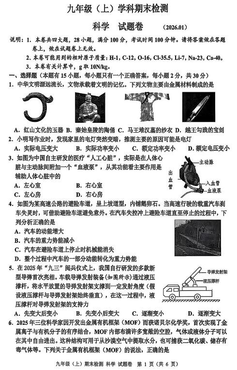 嘉兴市2025-2026学年第一学期九年级期末检测(扫描附答案)