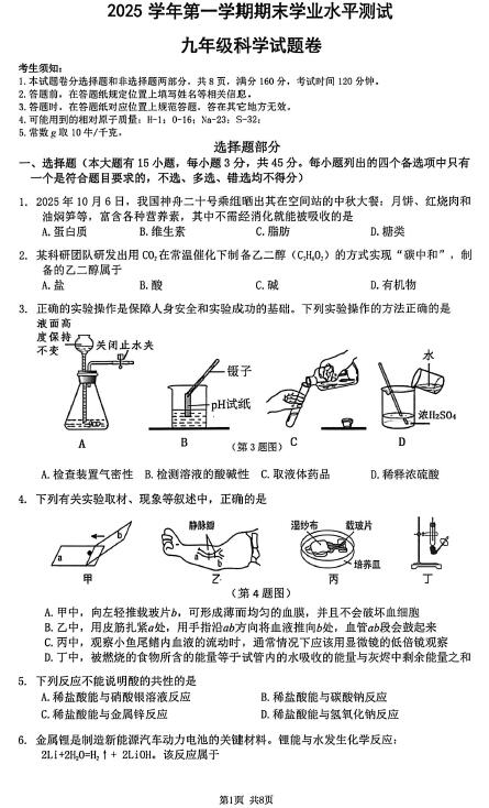 杭州临平区2025学年第一学期九年级期末学业水平测试(扫描无答案)
