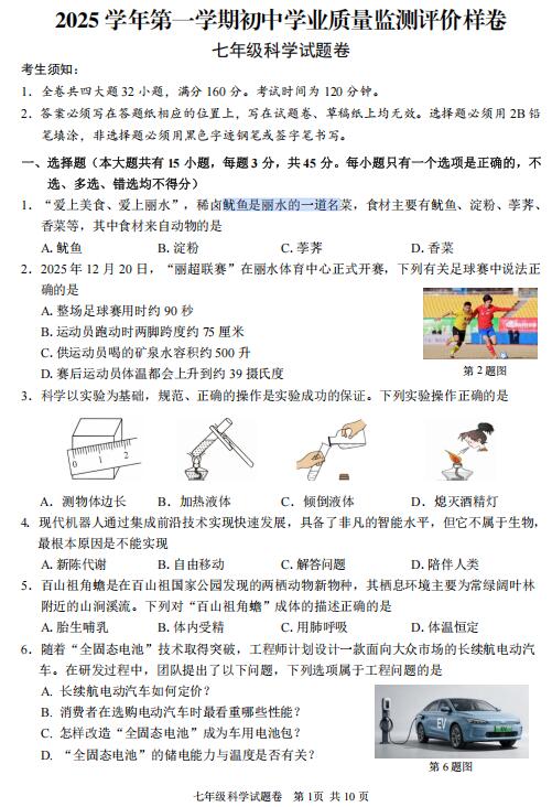 2.2025 年 12 月 20 日,“丽超联赛”在丽水体育中心正式开赛,下列有关足球赛中说法正