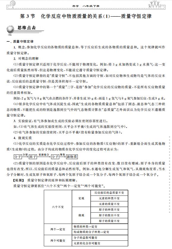 【拓展培优】第1章第3节 化学反应中物质质量的关系(1)——质量守恒定律 2026浙教版科学八下同步练习(pdf版,含答案)