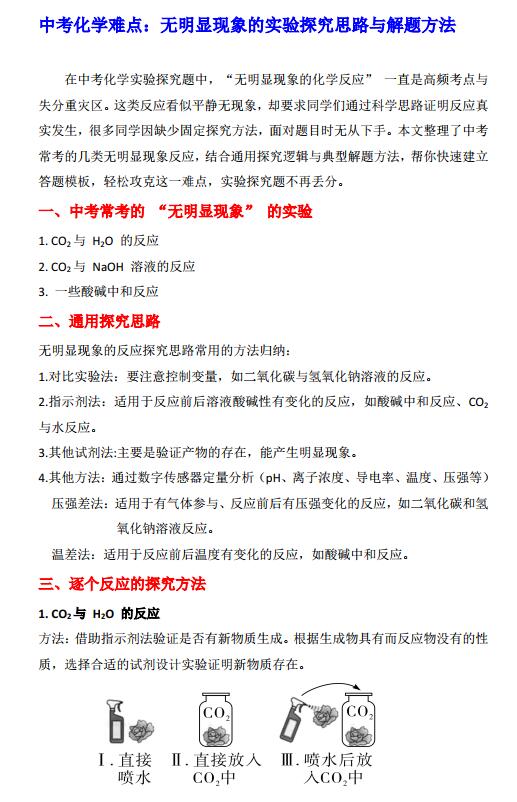 中考化学难点,无明显现象的反应