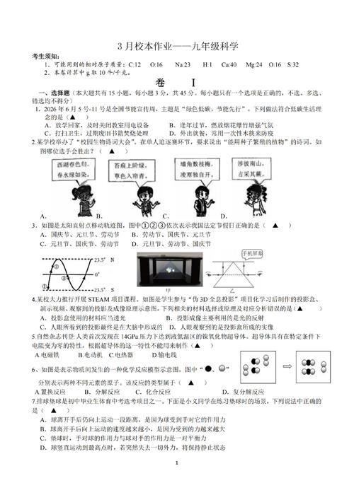 2026年3月浙江义乌丹溪中学九下3月月考(扫描附答案+答题卡)