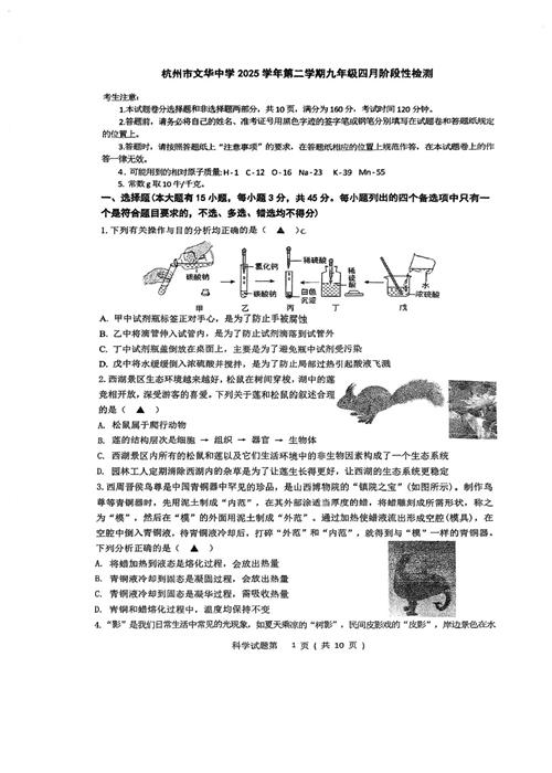 杭州市文华中学2025学年第二学期九年级四月阶段性检测(扫描无答案)