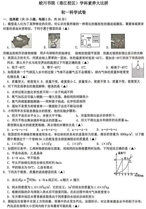 2025学年第二学期宁波蛟川书院(甬江校区)学科素养大比拼七年级科学(2026.4)(扫描附答案)