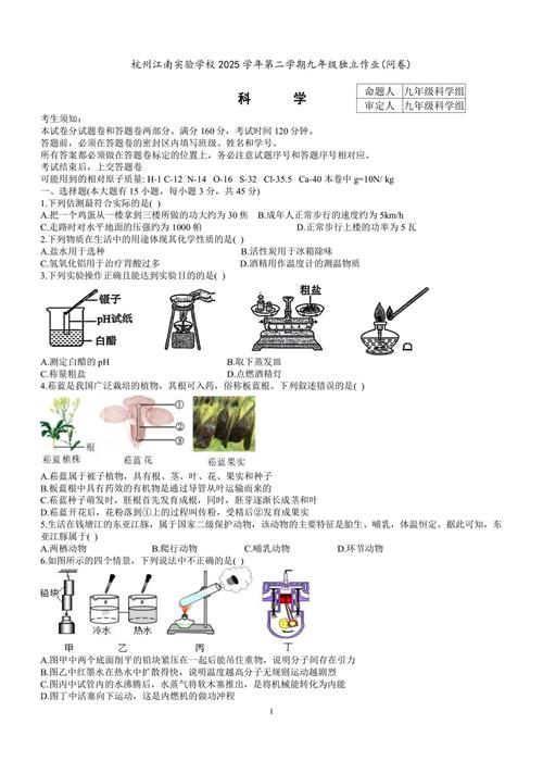 2026.4 杭州江南实验九年级月考科学卷(扫描附答案)