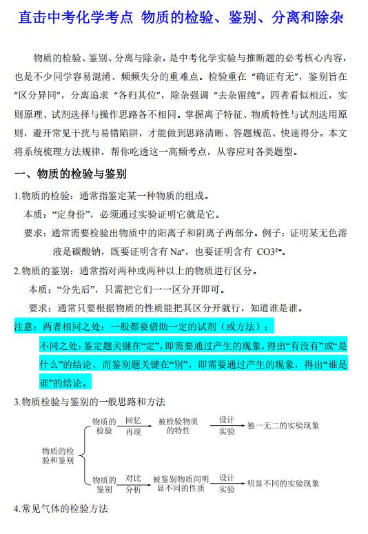 直击中考化学考点+物质的检验、鉴别、分离和除杂