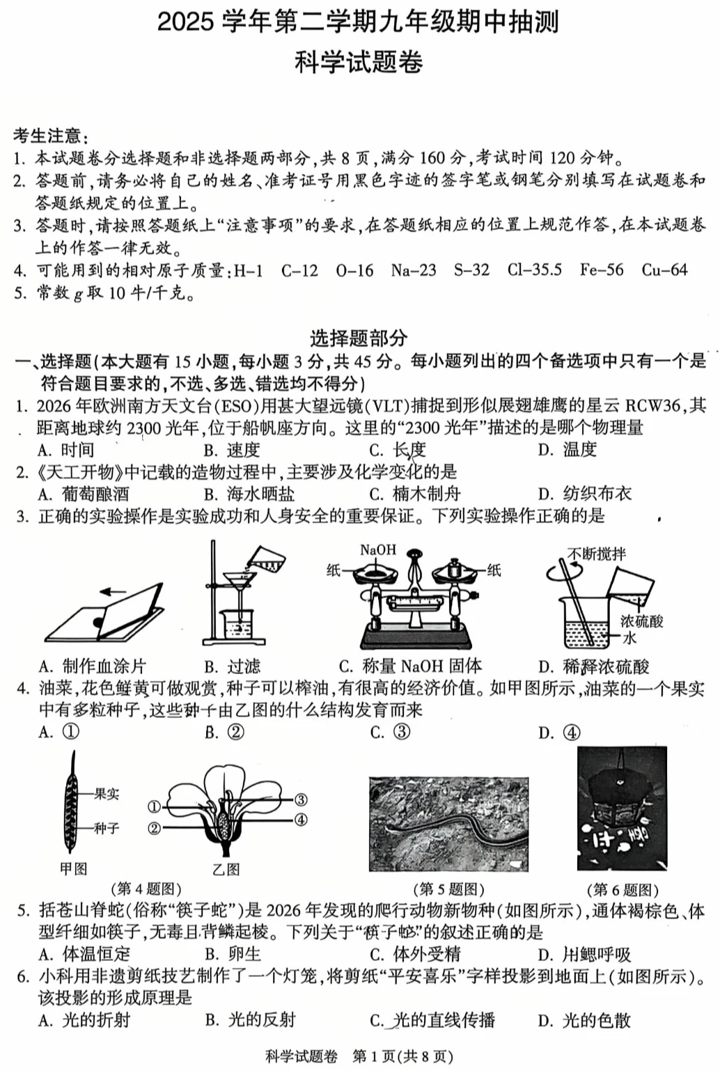 2026.4杭州富阳中考一模(扫描无答案)