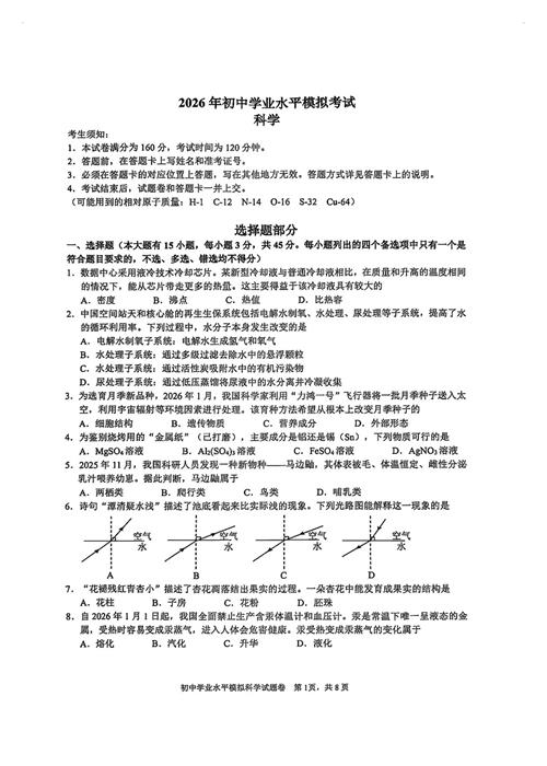 2026.4杭州市拱墅区中考科学一模卷(扫描附答案)