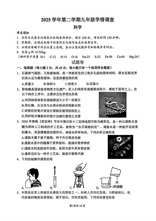 2026年4月杭州上城区中考一模科学卷(扫描无答案)