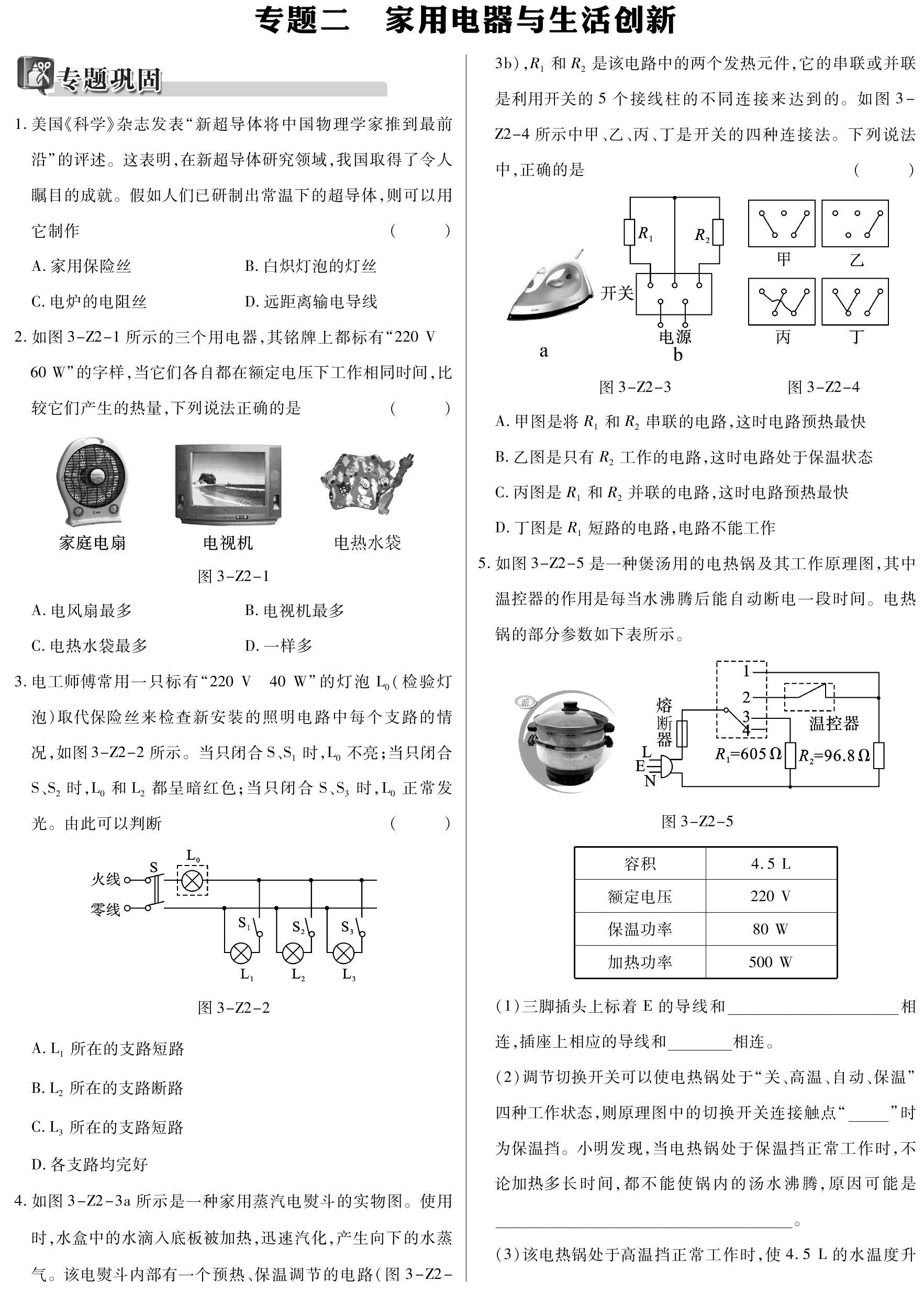 【倍速课时学练】2015课时作业本:第三章 专题二 家用电器与生活创新(扫描附答案)