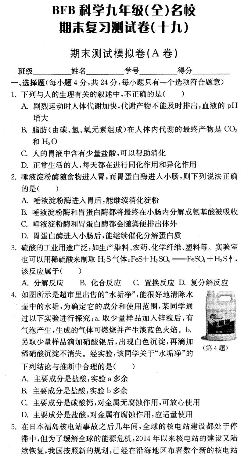 2015BFB名校期末复习-期末测试模拟A卷(扫描附答案)