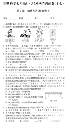 【2017BFB】第3章 运动和力(综合卷B)(扫描附答案)
