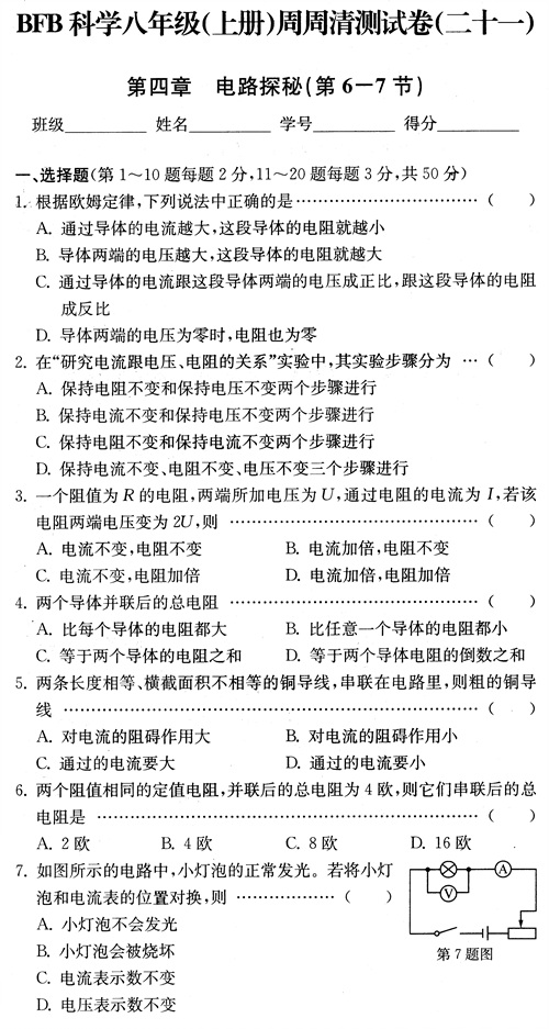 2017『BFB周周清』第四章 电路探秘(第6~7节)(扫描附答案)