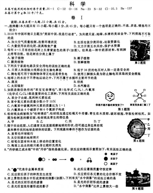 浙江省2018年初中学业水平考试(金华卷)科学试题(胶片版,附答案)