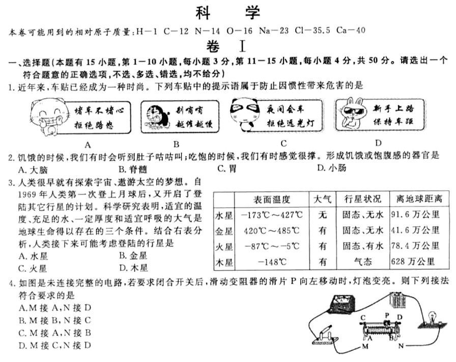 浙江省舟山市2018年中考科学真题试卷(扫描附答案)