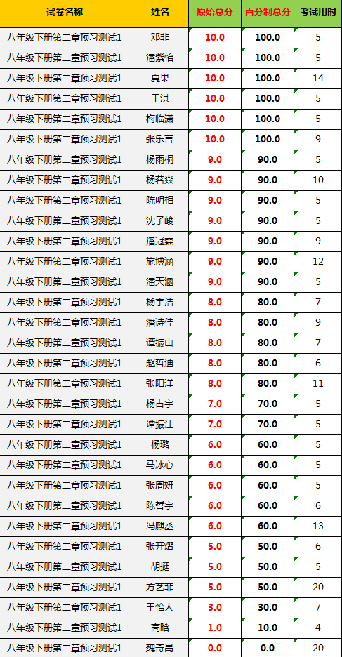 ◎HAPPY灌水 ==> 浏览主题:八年级下册第二章预习测1成绩
