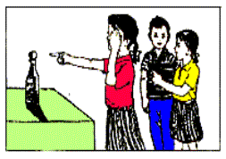 把一个玻璃瓶立在桌子上,在瓶口上放一个乒乓球.然后,用手蒙上自己的一只眼睛,从远处走过来,用手指自上而下轻轻地按一下乒乓球.看看谁的动作迅速而又准确.连续几次,你会发现,这样简单的事情竟不容易做得到.