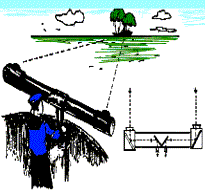 如果要准确地判断远处目标的距离,这可怎么办呢?想在人的脸上把两眼的距离拉大,这是根本不可能的.但是办法还是有的:可以用两个人代替两只眼(如图);也可以使用光学仪器.(如图所示)图就是海军用的观测仪器,使用它可以测定出远处军舰的位置.仪器上的两个镜头相当于人的两眼.它们的距离越大测得越准.