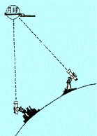 可是,如果用这种测距仪来测定月球和地球的距离就又不行了.为了测定月地距离就要把两只眼睛的距离再拉开几百到几千公里.一七五二年,拉朗德和他的老师首先测量出月地距离,他们的办法就是:一个人在欧洲的柏林,一个人在非洲的好望角,两人同时观测.这相当于一只眼睛在柏林,一只眼晴在好望角,两只眼睛拉开了一万多公里.