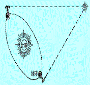 测量离我们地球更远的恒星的时候,就要把两只眼的距离拉开得更大些.天文学家利用地球公转轨道的直径(地球和太阳的平均距离是1.4960×108公里)做为两眼的距离.怎样把两只眼睛分开这么大的距离呢?这似乎是不可想象的事,但是科学家们想出了一个巧妙的方法.这个方法并不复杂.假如在某一天用天文望远镜观察了一个恒星的位置并且记录下来,等地球公转半年后再观察它一次,比较两次的观察结果,就可以计算出距离我们有多远.当然,这种测量要非常细心,并且要有非常精密的仪器.