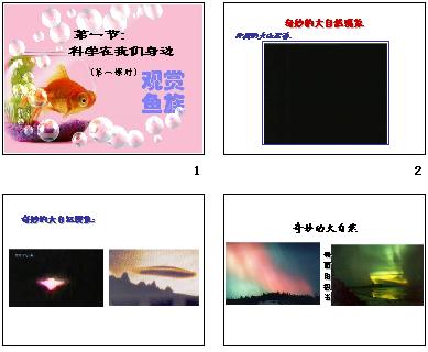 | 科学在我们身边(57张PPT) 1.以下视频教参光盘中有,这里不再上传了,请自行拷贝至课件同一文件夹内就OK 地球知识——火山.mpg 太空失重.mpg 昆虫大力士粪甲虫.mpg 速度冠军猎豹.mpg 跳高冠军跳蚤.mpg 游泳高手海豚.mpg 2.课件中若出现flash无法播放,一般是因控件问题引起的,请及时更新及注册最新flash控件!(操作方法可参考:http://yhkx.vicp.cc/zydown/Soft_Show.asp?SoftID=5604)并请安装PPT小插件http://yhkx.vicp.cc/zydown/Soft_Show.asp?SoftID=4522 3.此课件来源于本站与<课程导报>联合推出的课件集光盘(2009普及版),若想全部拥有全册课件,建议购买光盘(20元/册),这样要比下载扣点合算得多哦! |